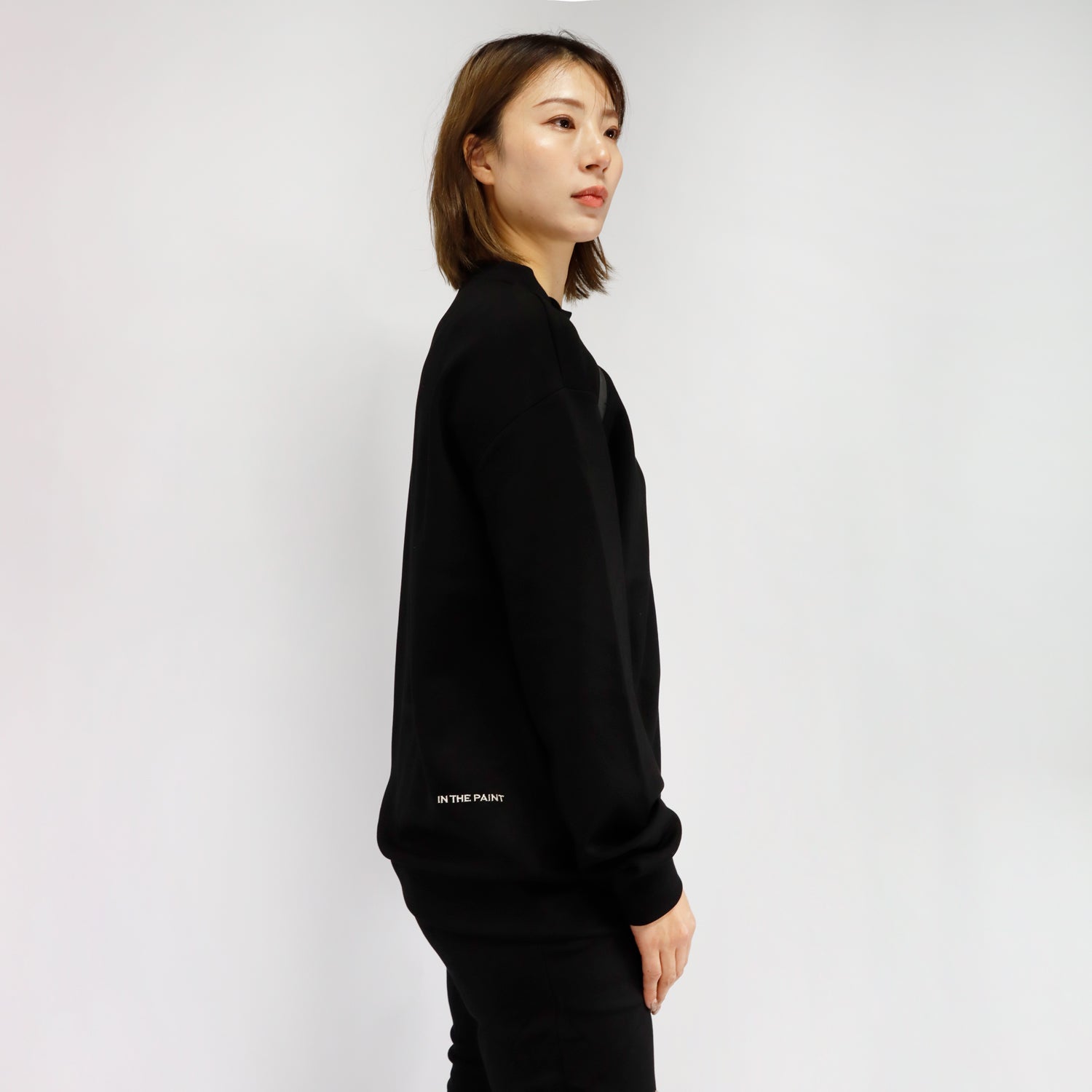 背面の腰下部分にIN THE PAINTの刺繍、左胸にキープアウトの刺繍、右鎖骨部分にファスナーを取り入れたハーフジップ長袖シャツです。