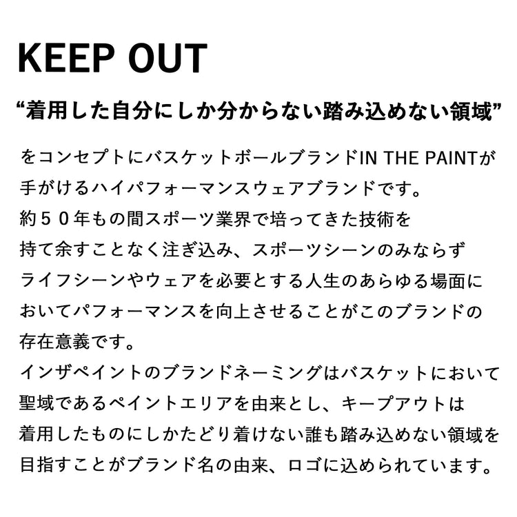フード部分にIN THE PAINTの刺繍、左胸にキープアウトの刺繍、ファスナー付きポケットを取り入れたプルオーバースウェットパーカーです。