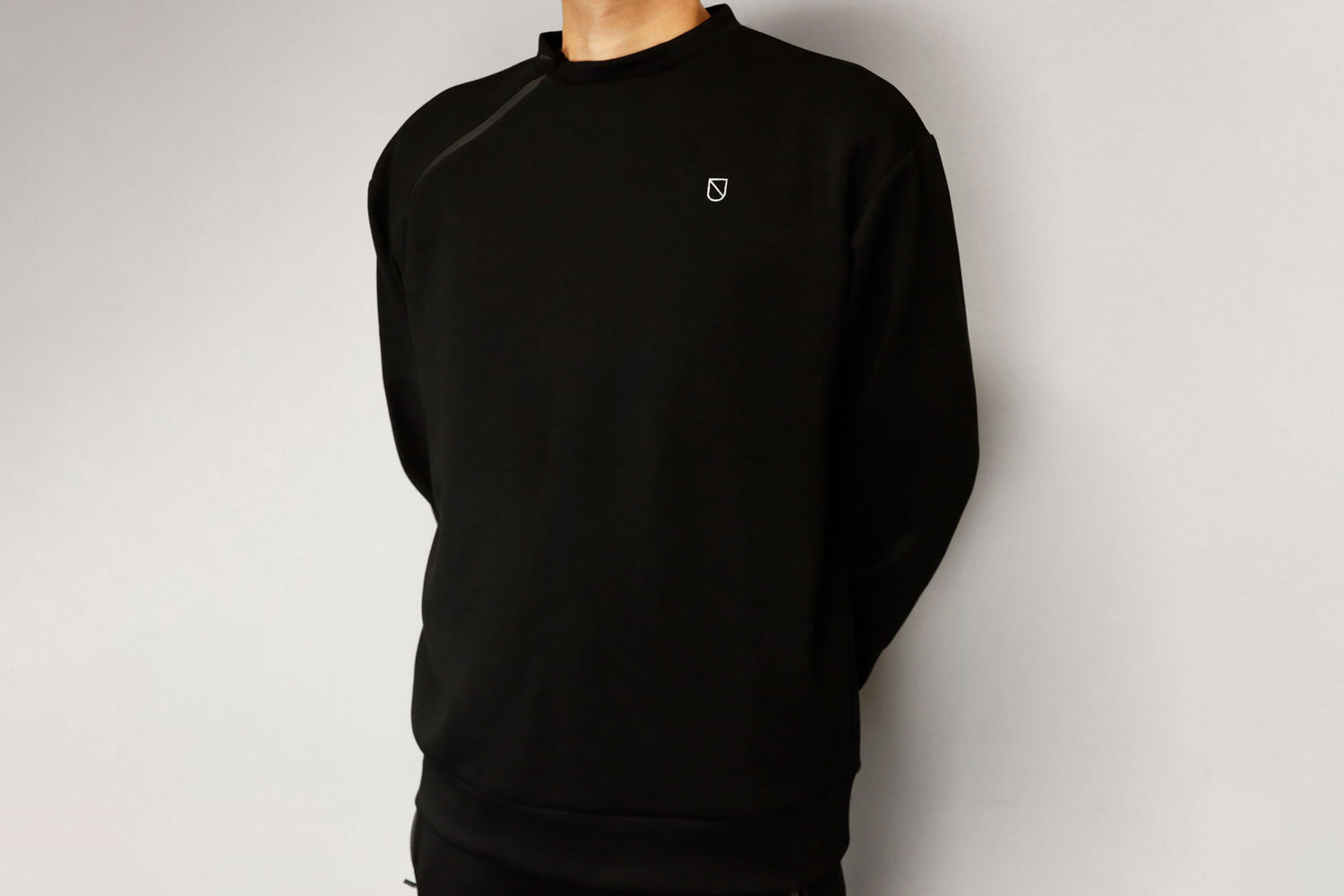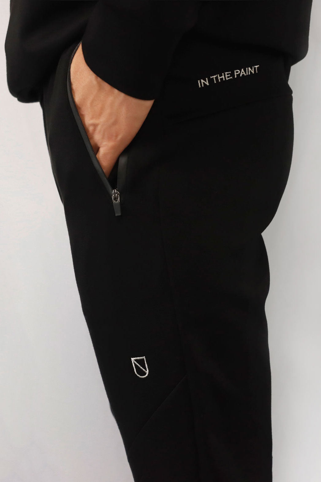 背面の腰下部分にIN THE PAINTの刺繍、左胸にキープアウトの刺繍、右鎖骨部分にファスナーを取り入れたスウェットシャツです。